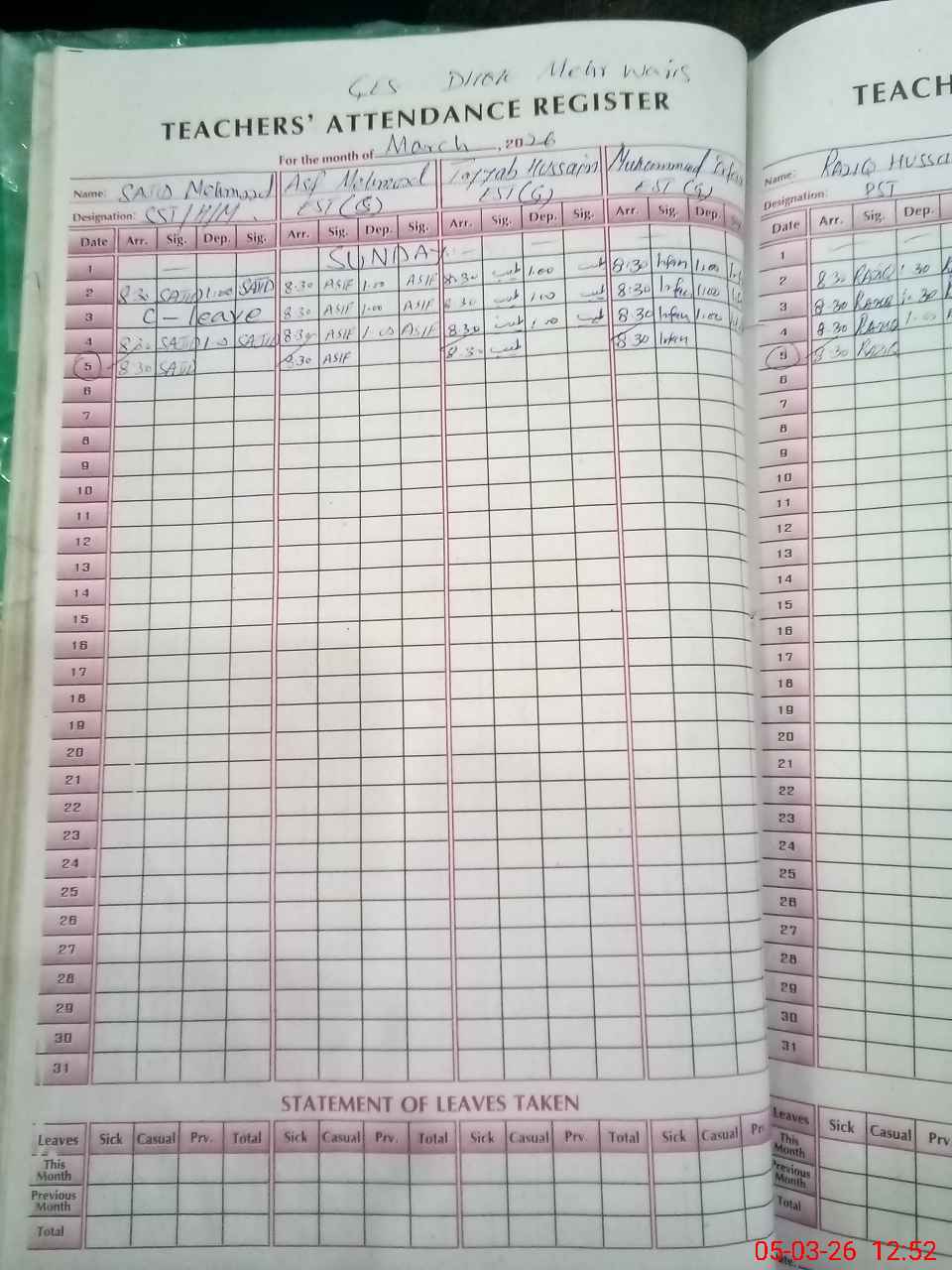 | Name: SA**** ME**** Designation: (School Headmaster's/Headmistress's) S.S.T.(Arts) Phone/Cell Number: 03**** |