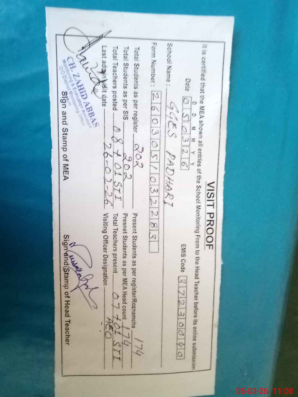 | EMIS Code: 37230040 | Name of School: GGES PADHARI | |||