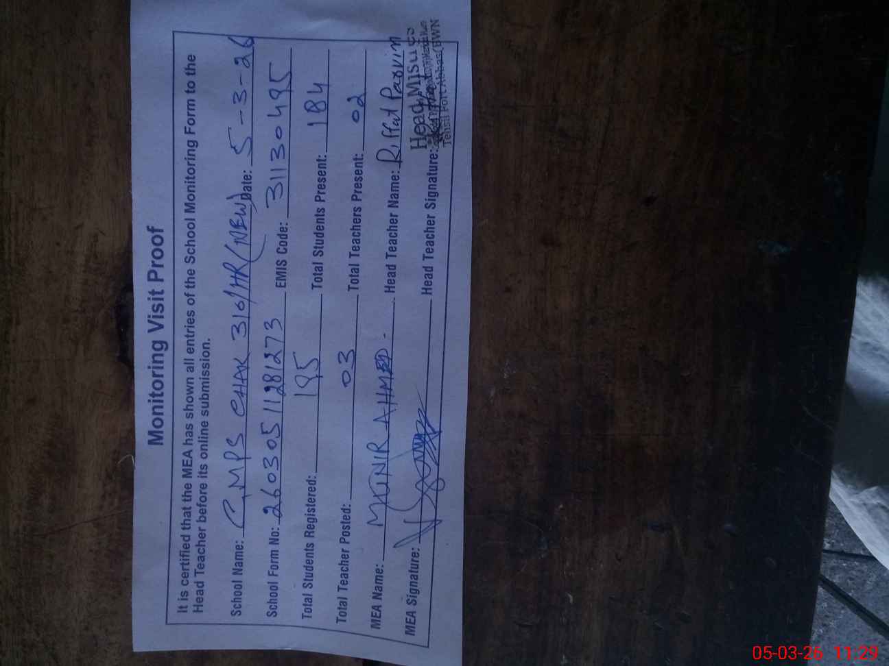 | EMIS Code: 31130495 | Name of School: GMPS CHAK NO. 310 HR (NEW) | |||