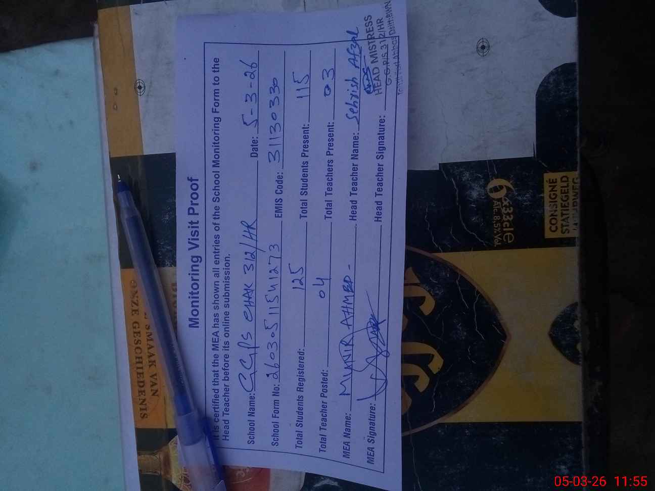 | EMIS Code: 31130330 | Name of School: GGPS CHAK NO. 312 HR | |||