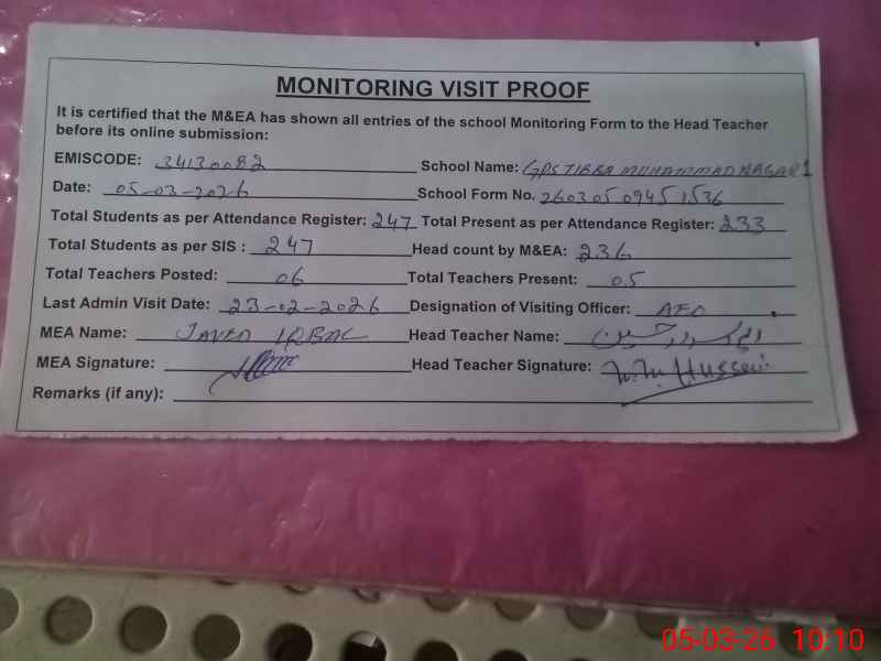| EMIS Code: 34130082 | Name of School: GPS TIBBA MUHAMMAD NAGAR NO.1 | |||