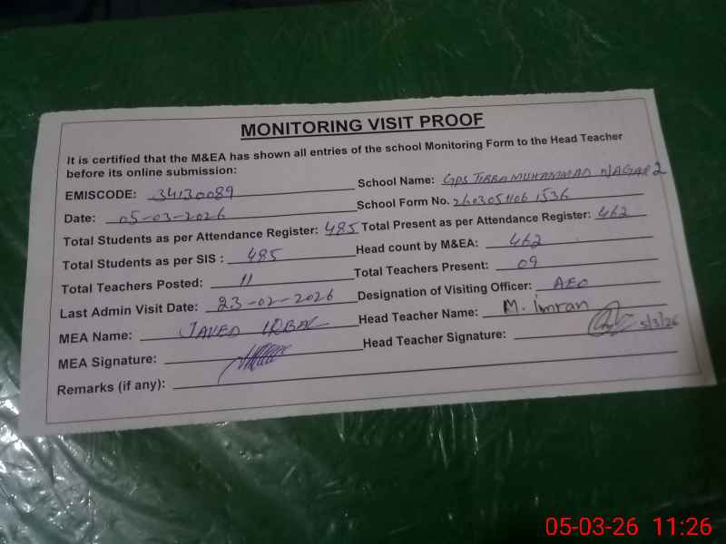 | EMIS Code: 34130089 | Name of School: GPS TIBBA MUHAMMAD NAGAR NO.2 | |||