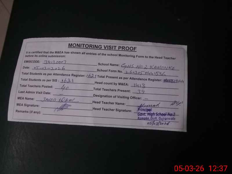 | EMIS Code: 34130007 | Name of School: GHS KAMOKE NO.2 SHEESH MEHAL ROAD | |||