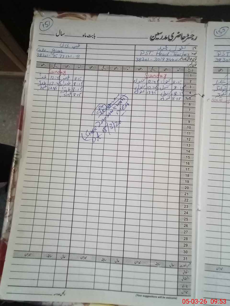 | Name: Ka**** Ma**** Designation: (School Headmaster's/Headmistress's) PST Phone/Cell Number: 03**** |