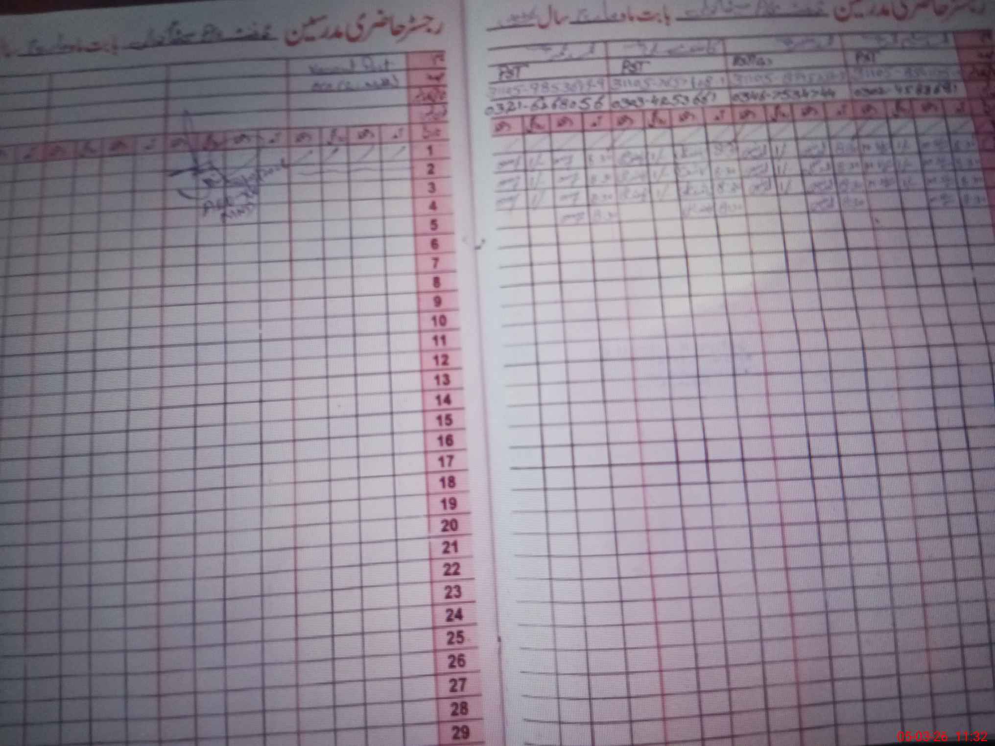| CNIC | Full Name | Designation | R/C | Absence During Last Calender Month |