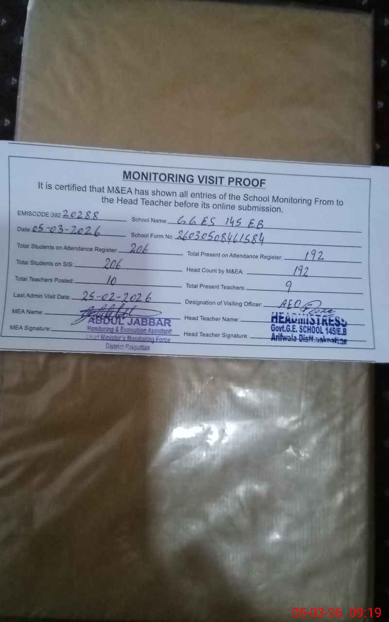 | Attendance Register | Head Teacher | MEA with School | Visit Proof |