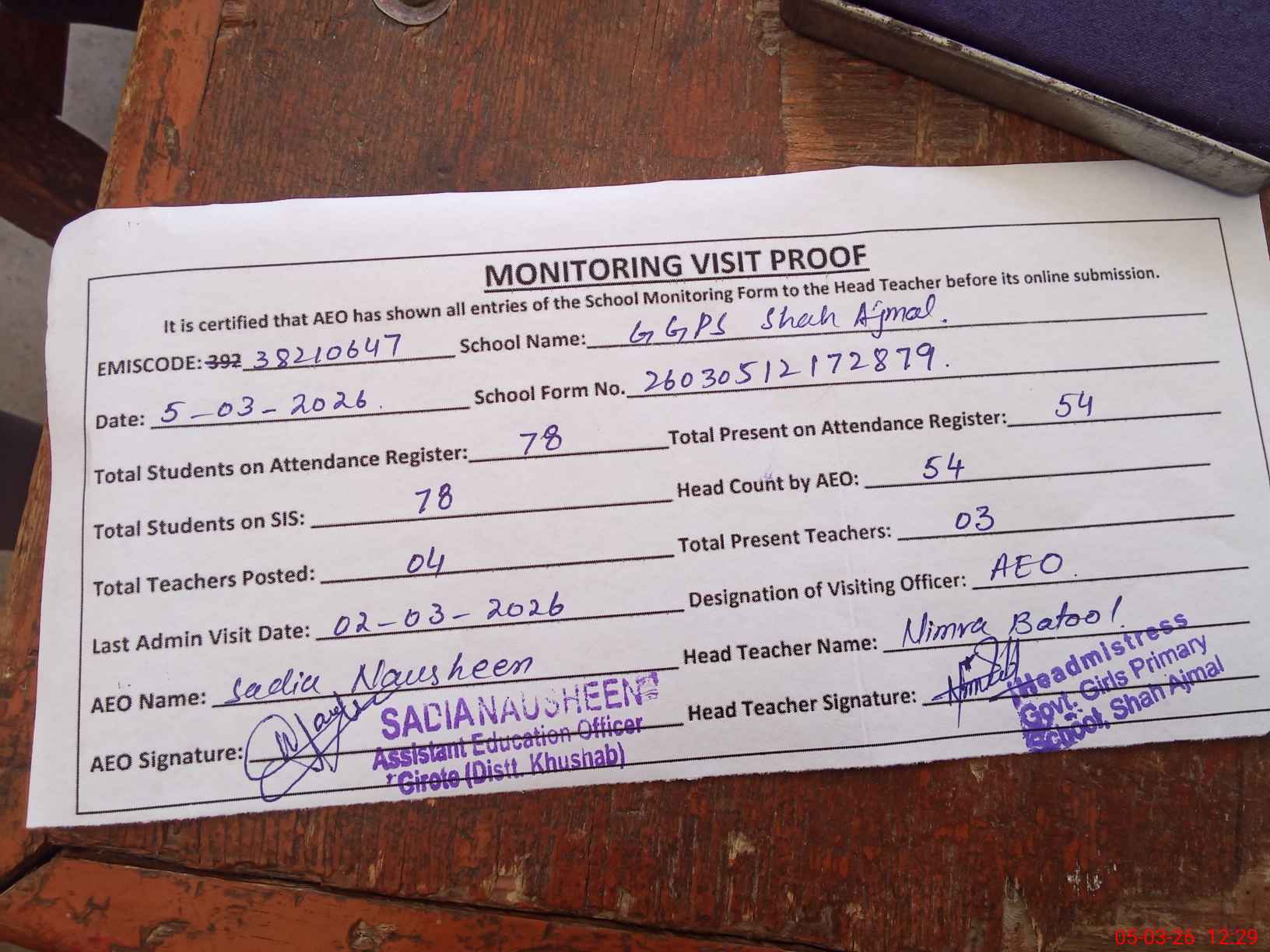 | EMIS Code: 38210647 | Name of School: GGPS SHAH AJMAL GIROTE | |||