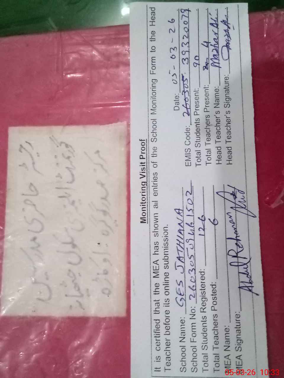 | Name: Mu**** Ja**** As**** Designation: (School Headmaster's/Headmistress's) SST Phone/Cell Number: 03**** |