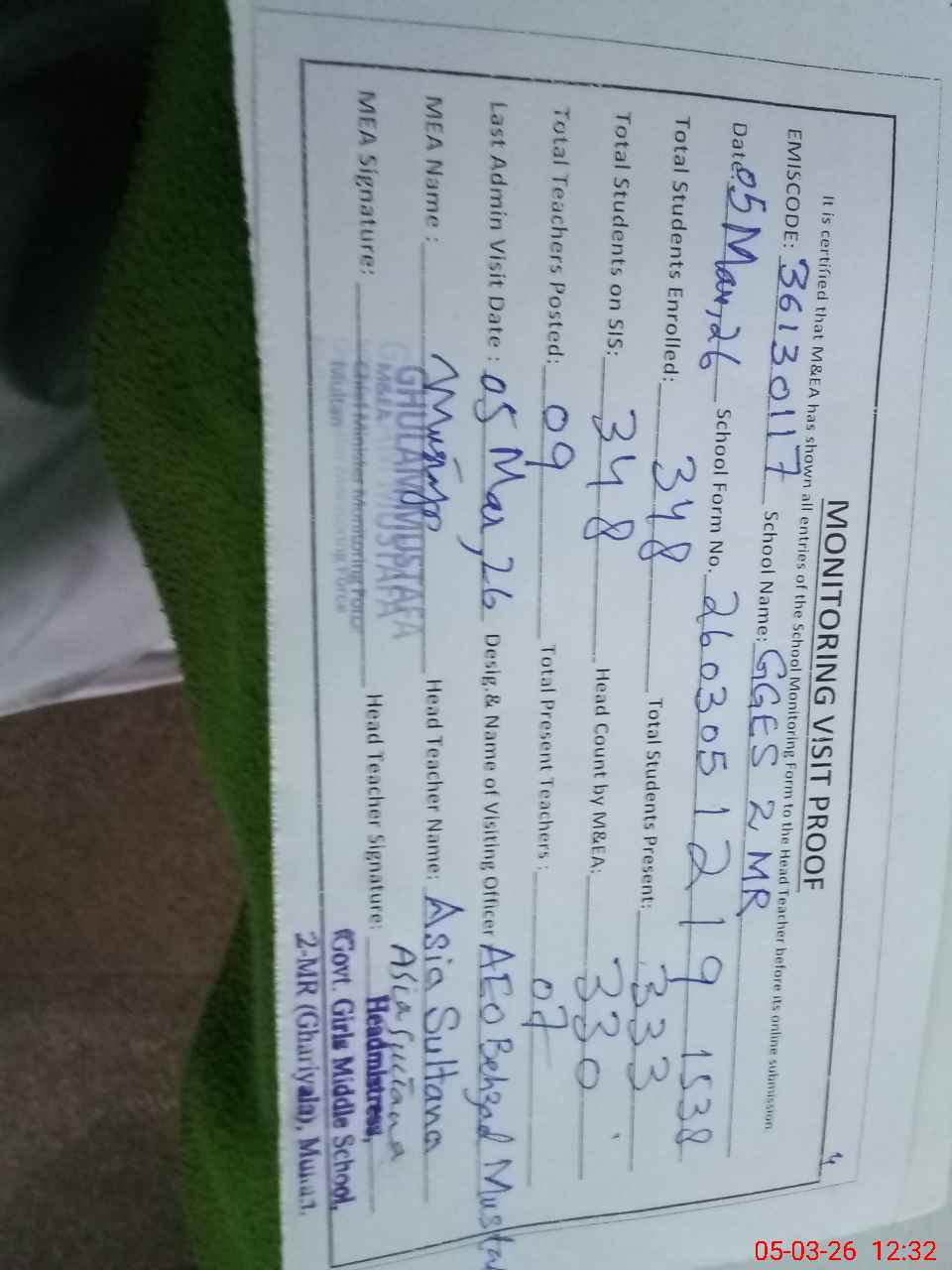 | EMIS Code: 36130117 | Name of School: GGES 2-MR P/O MAKHDOOM RASHEED | |||