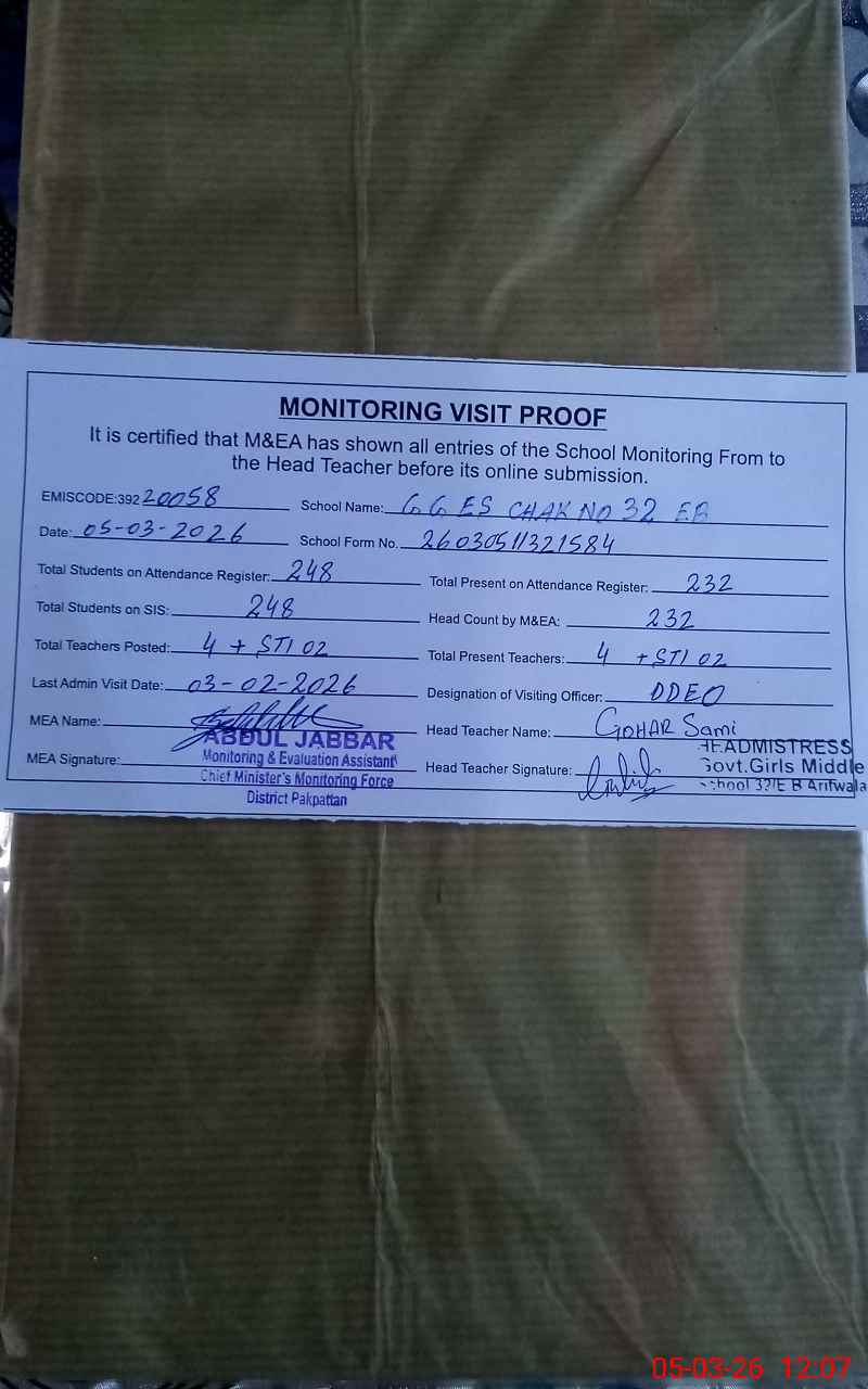 | EMIS Code: 39220058 | Name of School: GGES CHAK NO.32 EB | |||