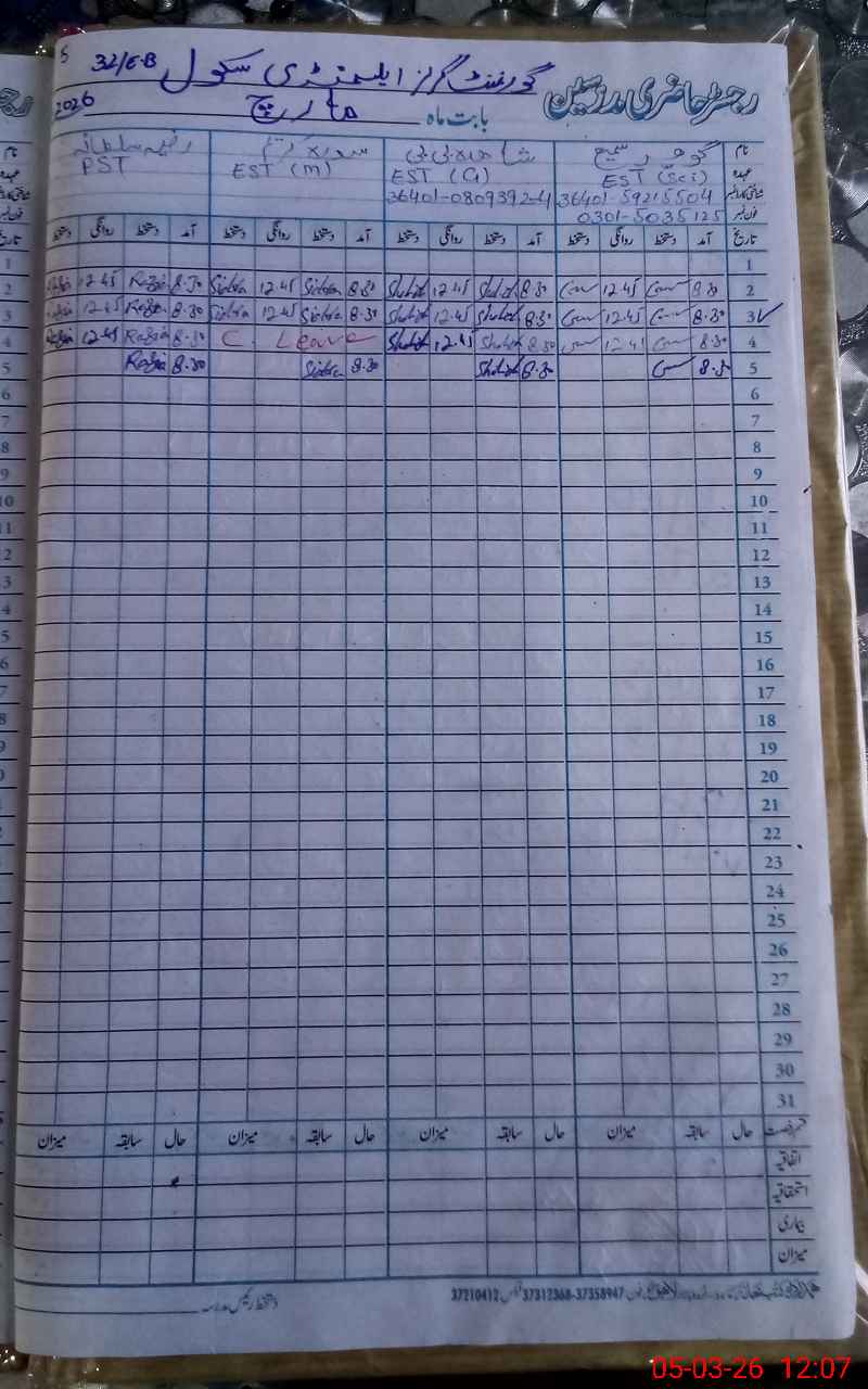 | Remarks (Use Separate Page if Required): STI SEHRISH FATIMA PRESENT STI AISHA ZAFAR PRESENT | |||||