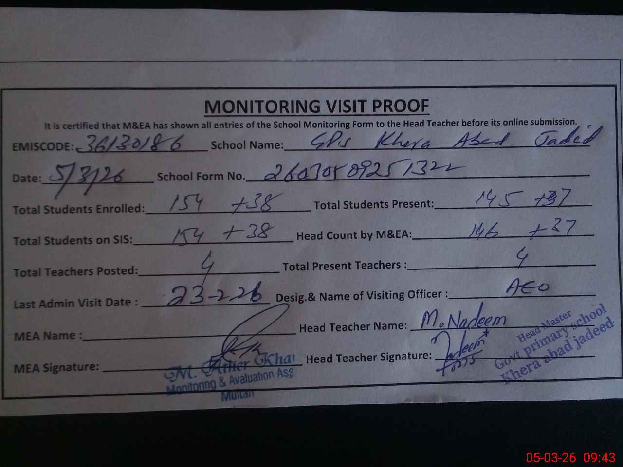 | EMIS Code: 36130186 | Name of School: GPS KHERA ABAD JADID | |||