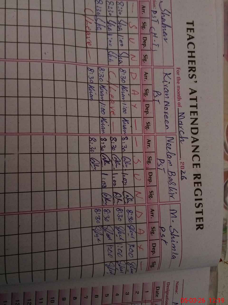 | Name: Sh**** Designation: (School Headmaster's/Headmistress's) PST Phone/Cell Number: 03**** |