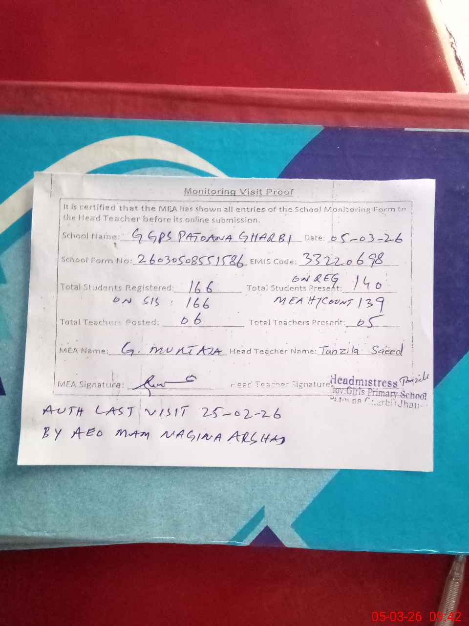 | EMIS Code: 33220698 | Name of School: GGPS PATOANA GHARBI | |||