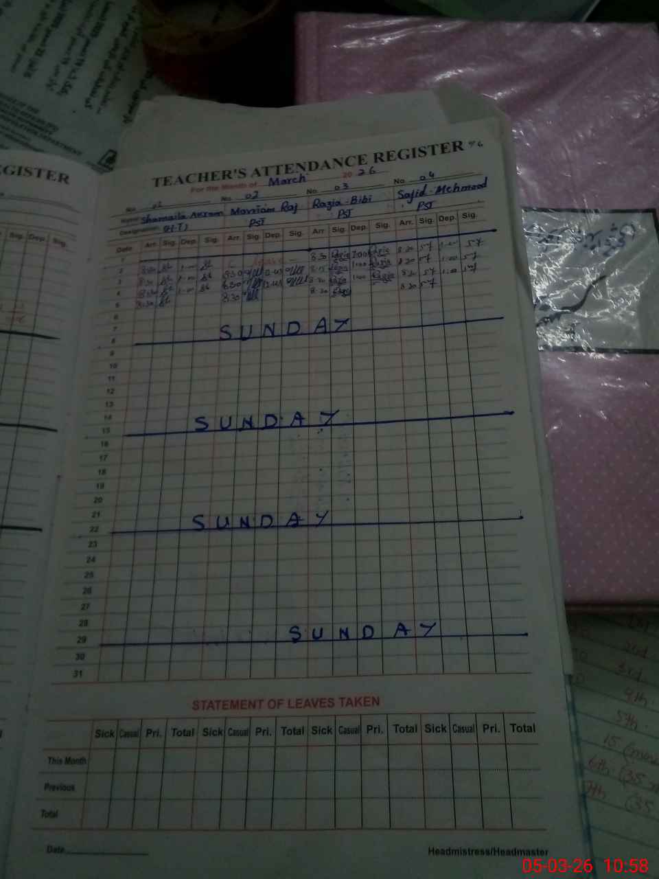 | 42**** | Hi**** Ha**** | PST Science/Maths | Regular | 0 | 0 | 0 | 0 | 0 | 0 | 0 | 0 | 0 | Maternity |