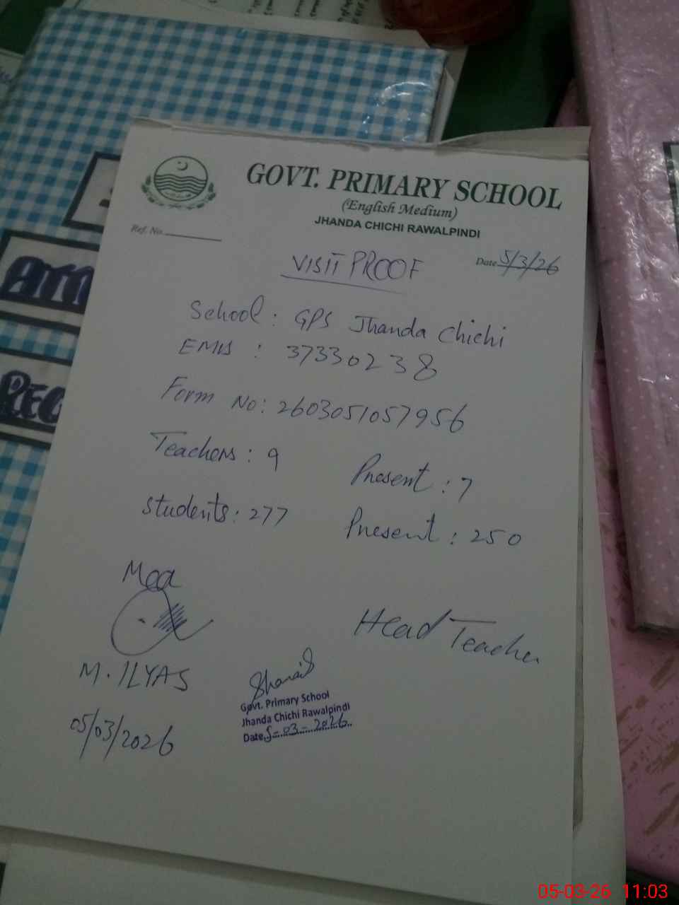 | EMIS Code: 37330238 | Name of School: GPS JHANDA CHICHI | |||