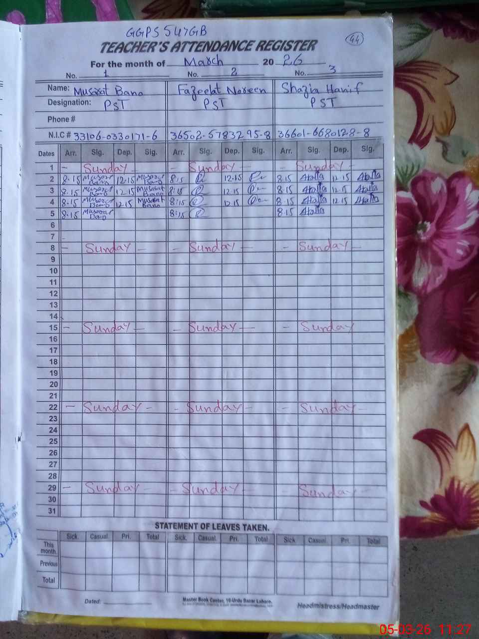 | Name: MU**** BA**** Designation: (School Headmaster's/Headmistress's) PST Phone/Cell Number: 03**** |