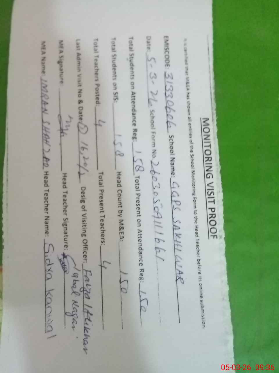 | EMIS Code: 31330606 | Name of School: GGPS SAKHI WAR | |||