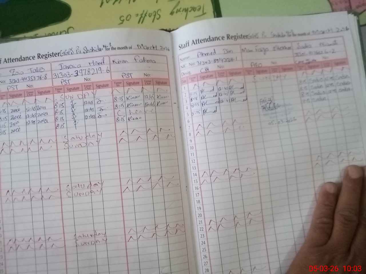 | CNIC | Full Name | Designation | R/C | Absence During Last Calender Month |