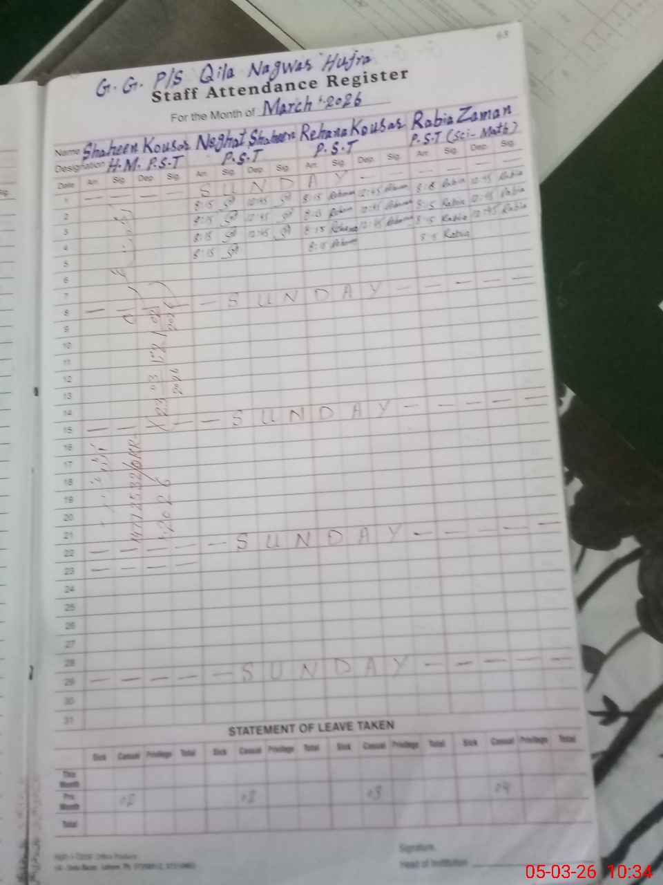 | Leave | Duty | Absent | Maternity | Medical | Ex- Pak |