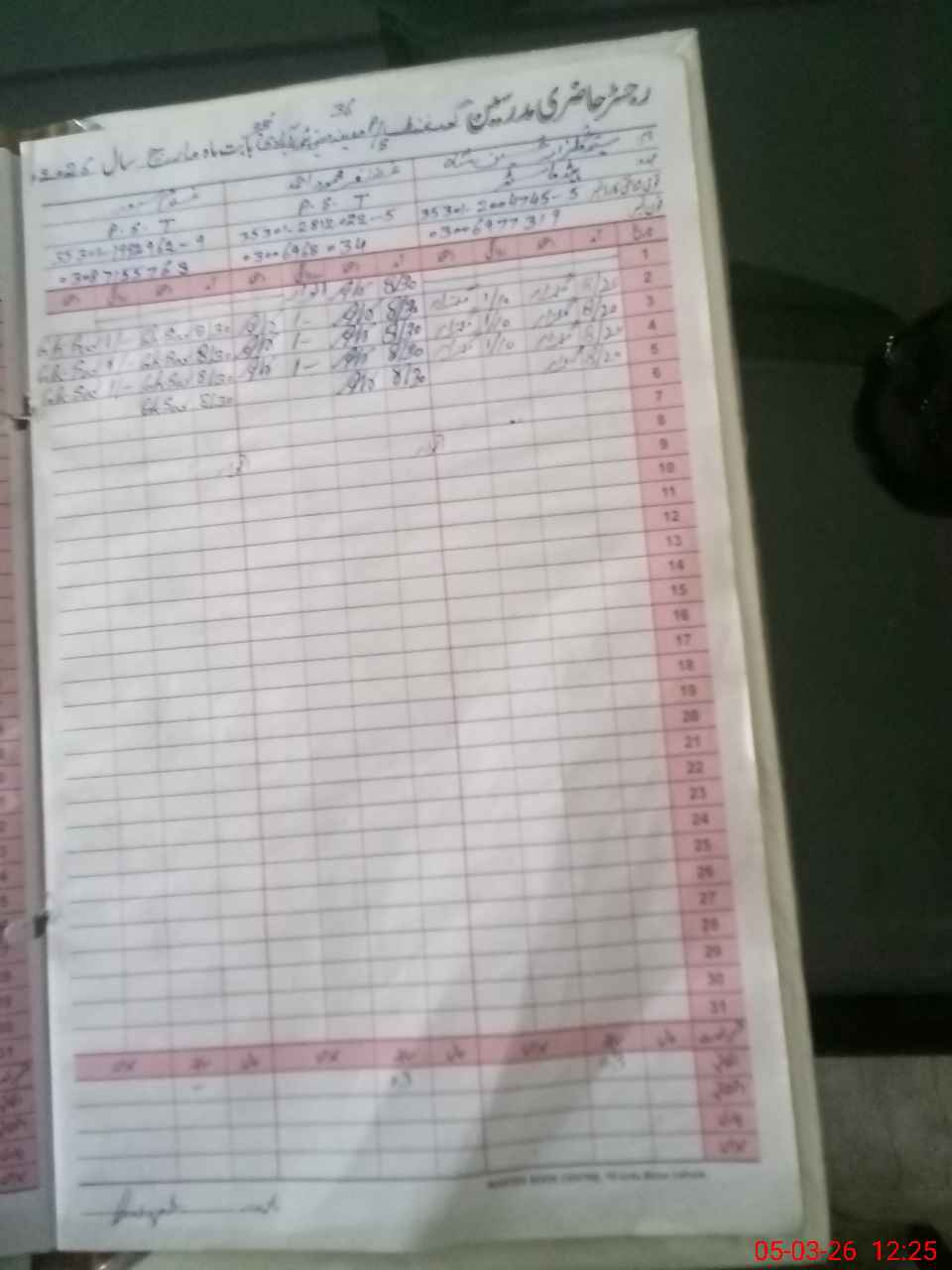 | CNIC | Full Name | Designation | R/C | Absence During Last Calender Month |