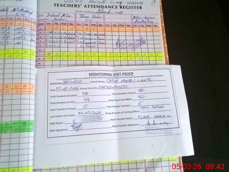 | EMIS Code: 36140036 | Name of School: GGHS HAVELI LONG | |||