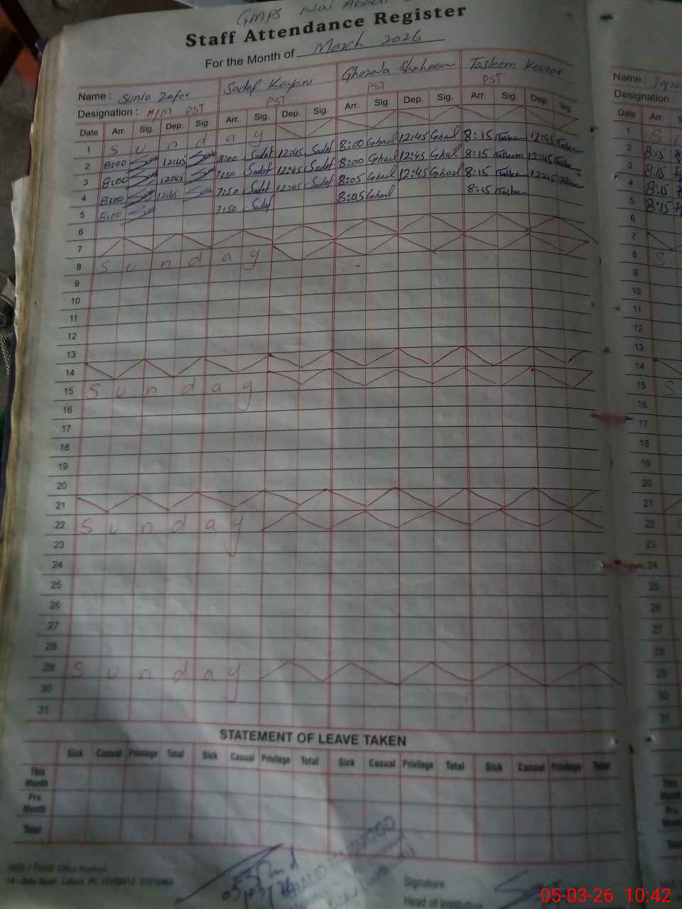 | Leave | Duty | Absent | Maternity | Medical | Ex- Pak |