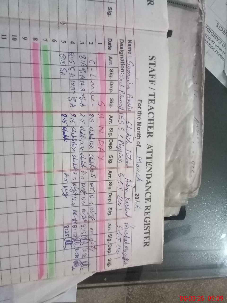 | Name: Su**** Ba**** Designation: (School Headmaster's/Headmistress's) Incharge Principal Phone/Cell Number: 03**** |