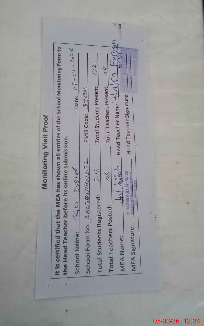 | EMIS Code: 31130325 | Name of School: GGES CHAK NO 338 HR | |||