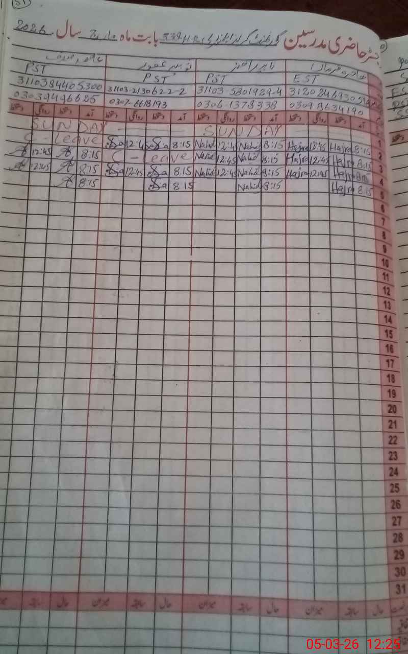 | 31**** | Sh**** Ya**** | EST (Math) | Regular | 0 | 0 | 0 | 0 | 0 | 0 | 0 | 0 | 0 | Absent (Un-Authorized) |