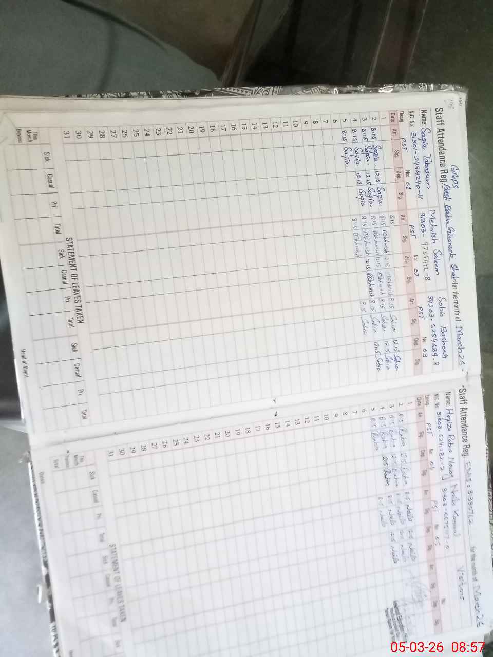 | CNIC | Full Name | Designation | R/C | Absence During Last Calender Month |