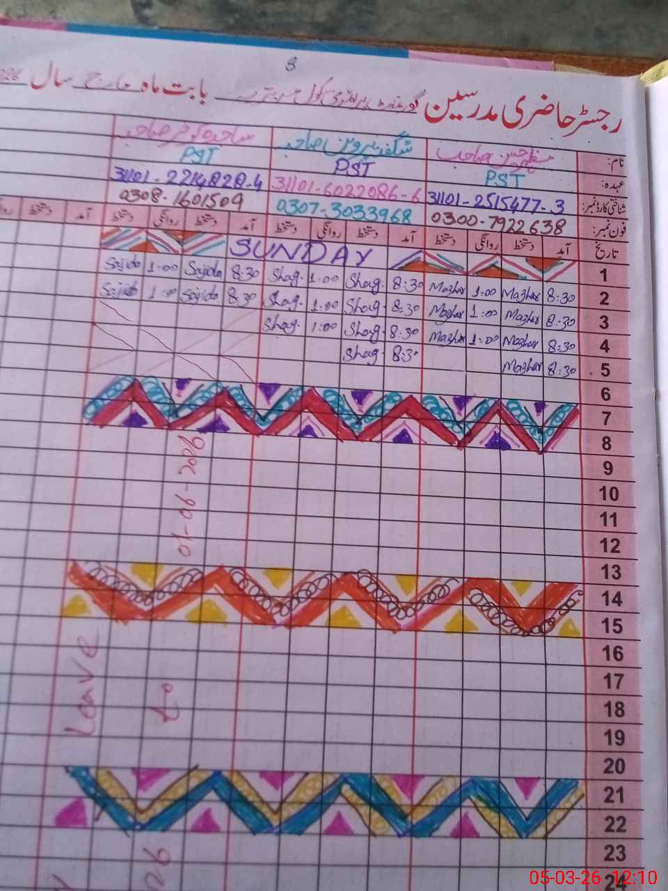 | CNIC | Full Name | Designation | R/C | Absence During Last Calender Month |