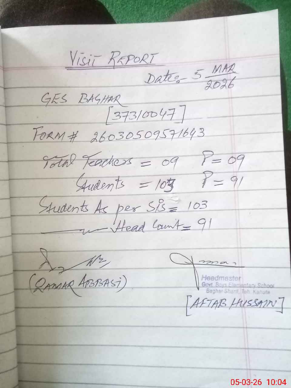 | EMIS Code: 37310047 | Name of School: GES BAGHAR SHARIF | |||