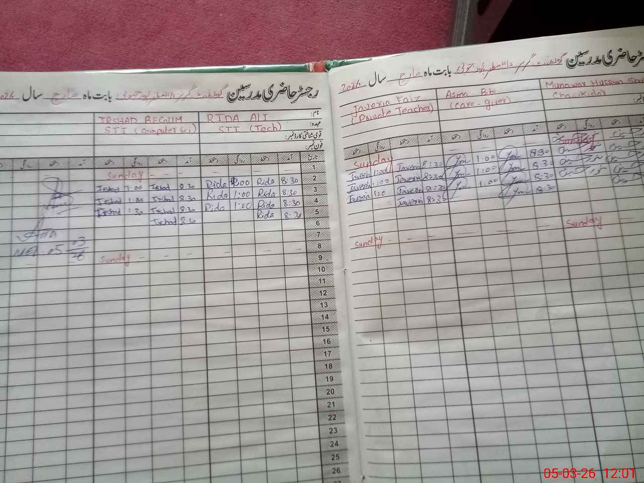 | CNIC | Full Name | Designation | R/C | Absence During Last Calender Month |
