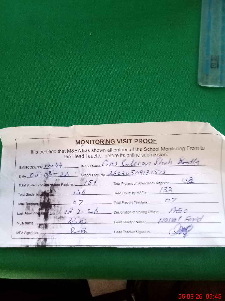 | EMIS Code: 39210044 | Name of School: GES SALEEM SHAH BODLA | |||