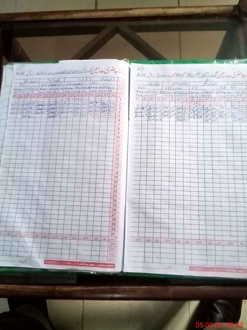 | CNIC | Full Name | Designation | R/C | Absence During Last Calender Month |