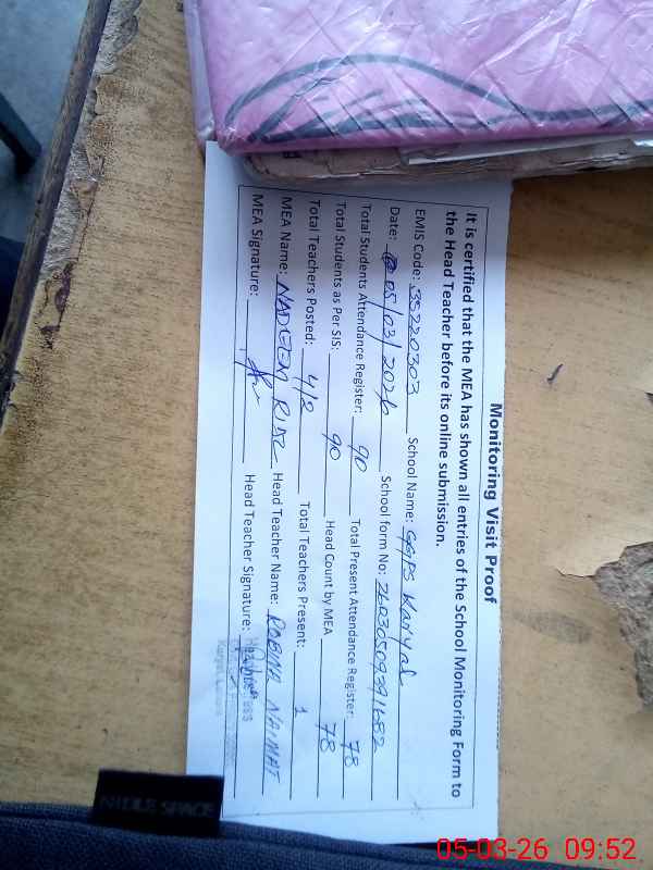 | EMIS Code: 35220303 | Name of School: GGPS KARYAL | |||