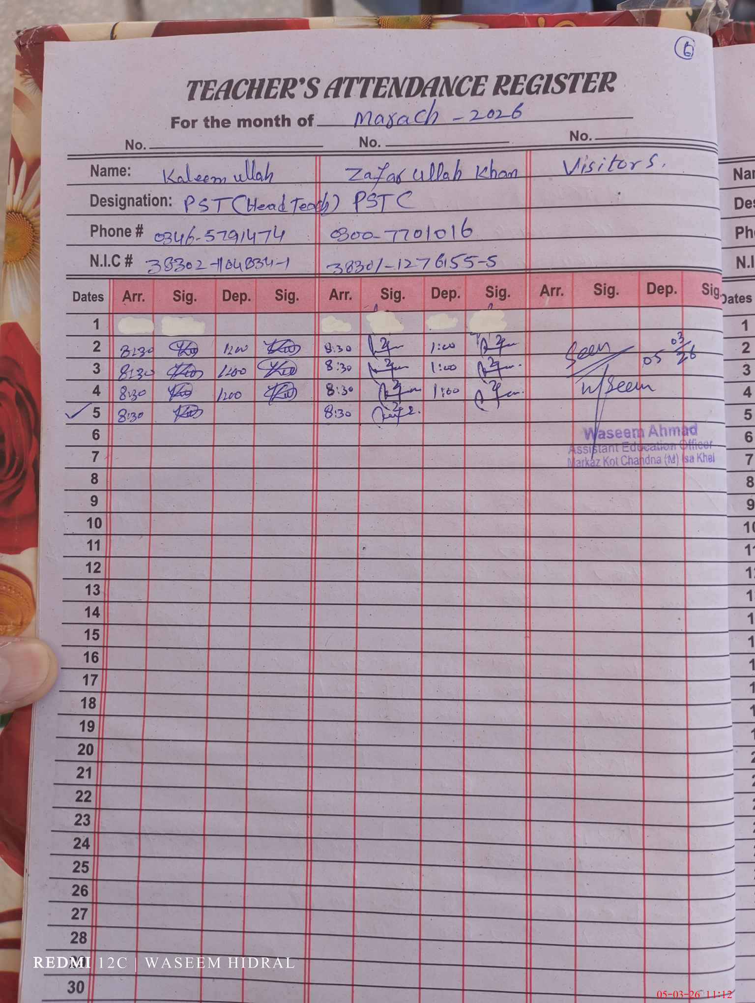 | Name: Ka**** Designation: (School Headmaster's/Headmistress's) ESE A Phone/Cell Number: 03**** |