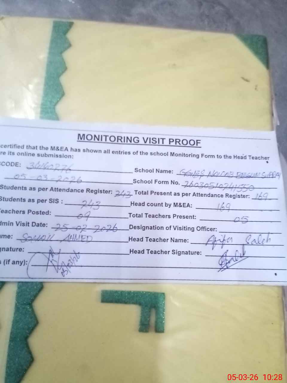 | EMIS Code: 34140276 | Name of School: GGES NAWAB BEGUM (SUPRAY) | |||
