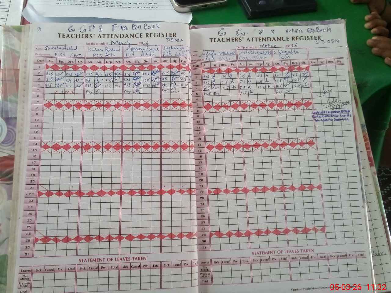 | Name: SU**** AR**** Designation: (School Headmaster's/Headmistress's) PST Phone/Cell Number: 03**** |