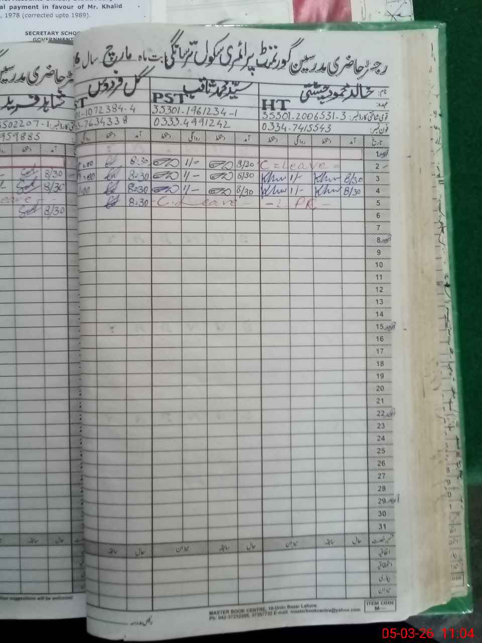 | Name: KH**** MA**** Designation: (School Headmaster's/Headmistress's) PST Phone/Cell Number: 03**** |