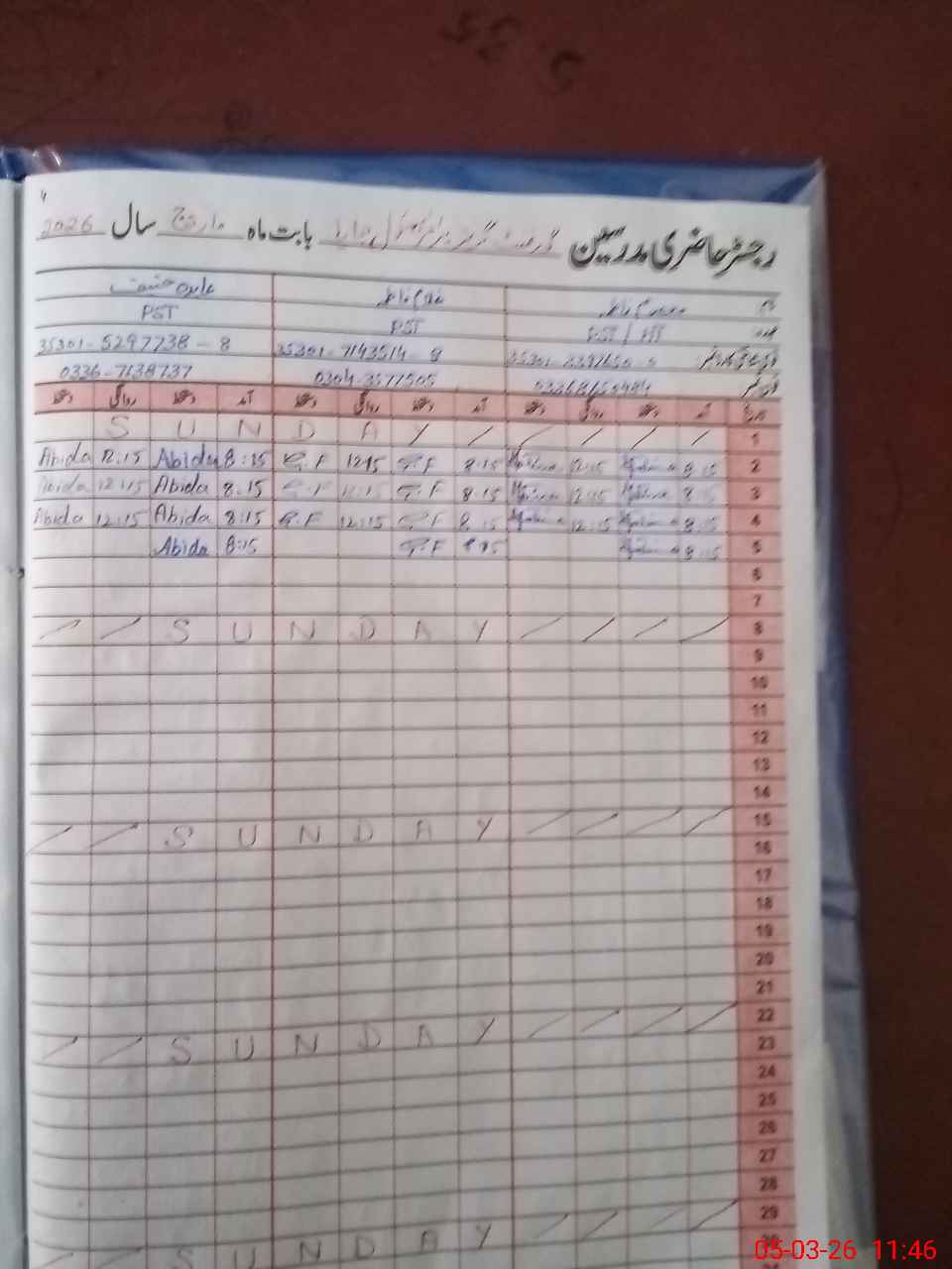 | Name: MA**** FA**** Designation: (School Headmaster's/Headmistress's) PST Phone/Cell Number: 03**** |