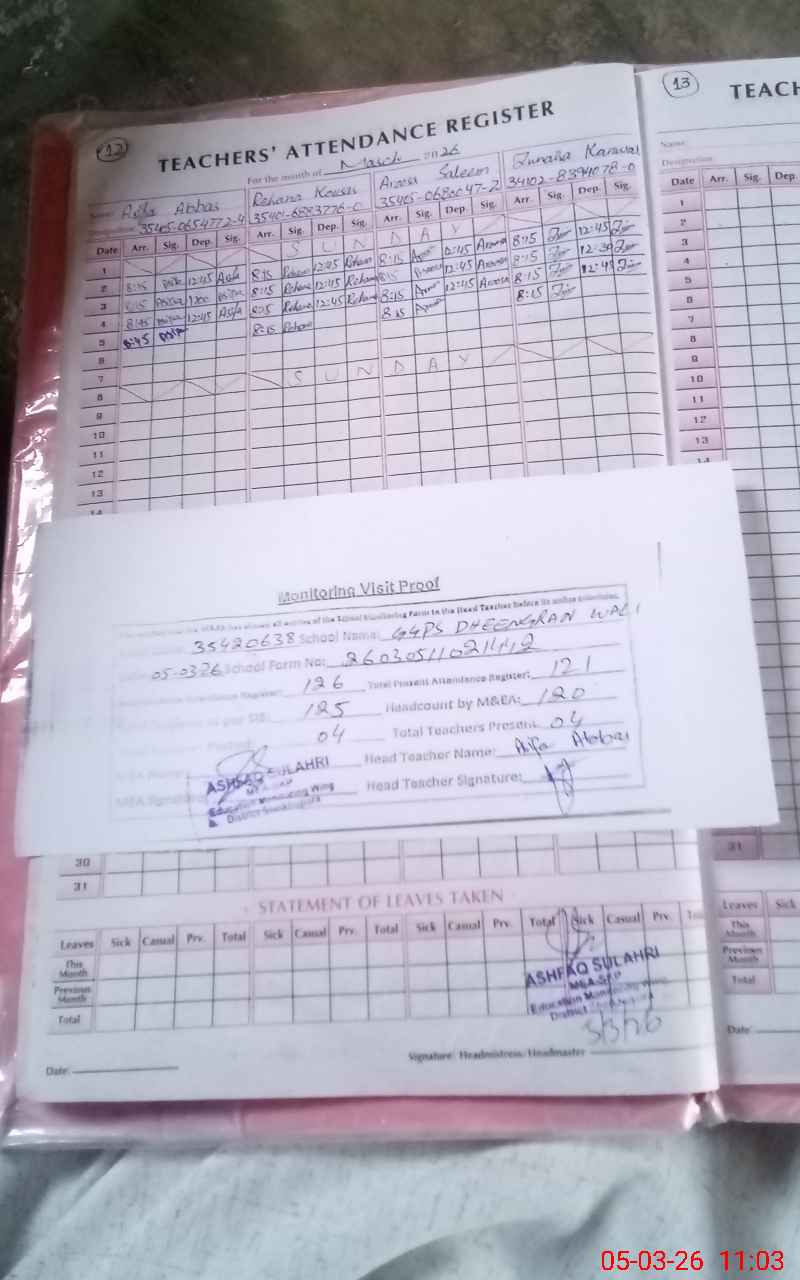 | EMIS Code: 35420638 | Name of School: GGPS DHEENGRAN WALI | |||