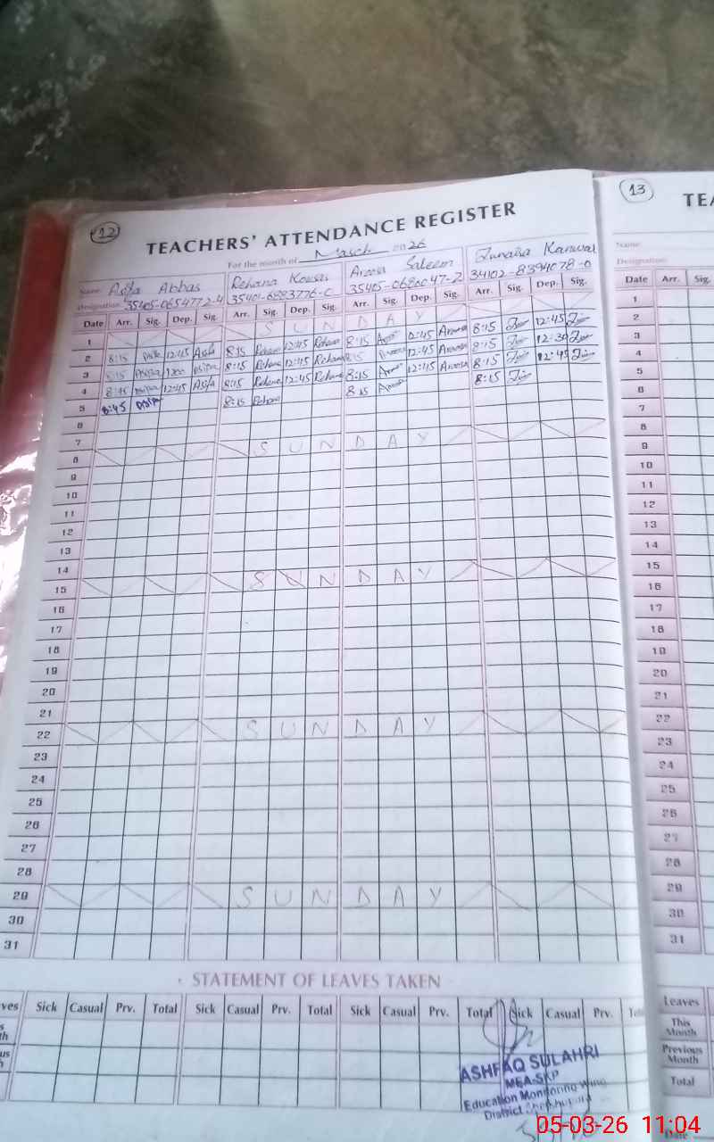 | Name: AS**** AB**** Designation: (School Headmaster's/Headmistress's) PST Phone/Cell Number: 03**** |