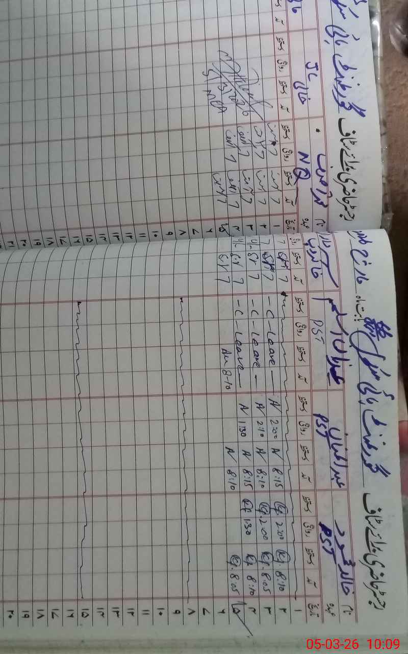 | CNIC | Full Name | Designation | R/C | Absence during last cal. month |