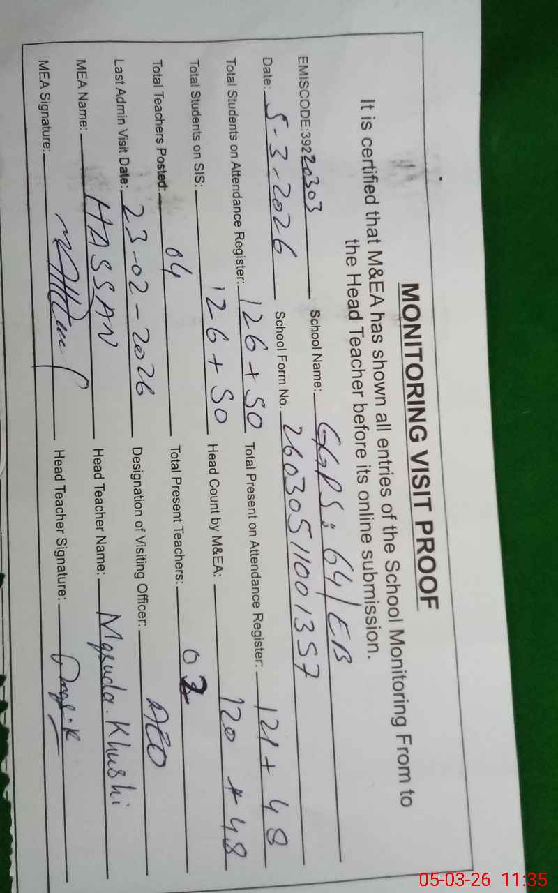 | Attendance Register | Head Teacher | MEA with School | Visit Proof |