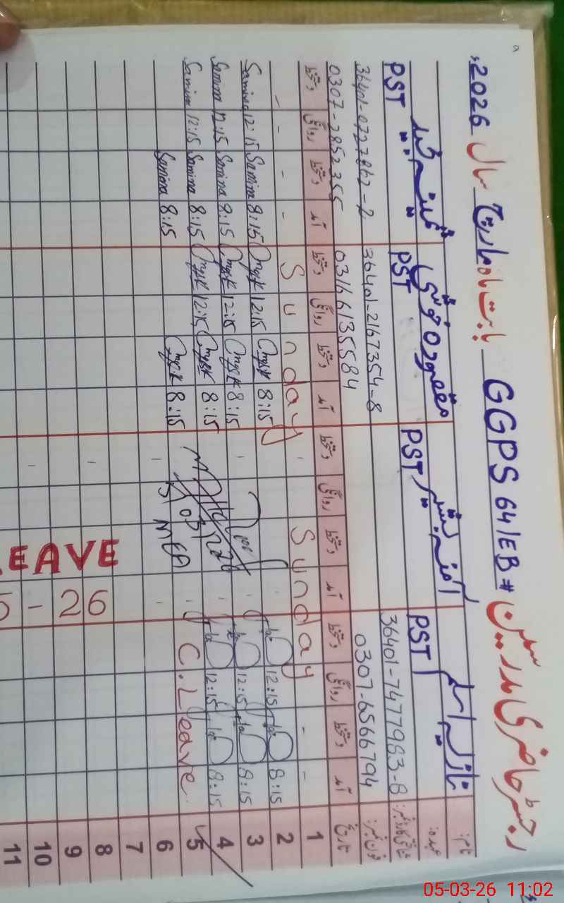 | 36**** | Na**** As**** | PST Science/Maths | Regular | 0 | 0 | 0 | 0 | 0 | 0 | 0 | 0 | 0 | Casual |