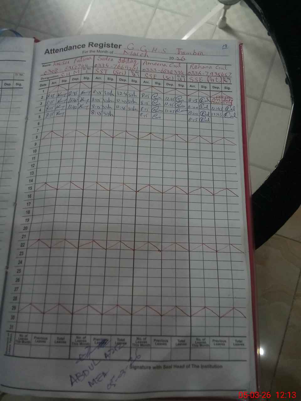 | CNIC | Full Name | Designation | R/C | Absence During Last Calender Month |