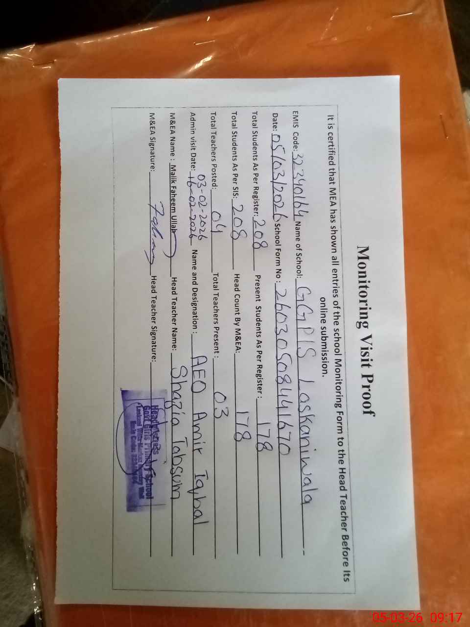 | EMIS Code: 32340164 | Name of School: GGPS LASKANI WALA | |||