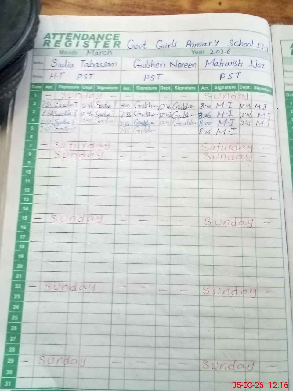| Name: SA**** TA**** Designation: (School Headmaster's/Headmistress's) PST Phone/Cell Number: 03**** |